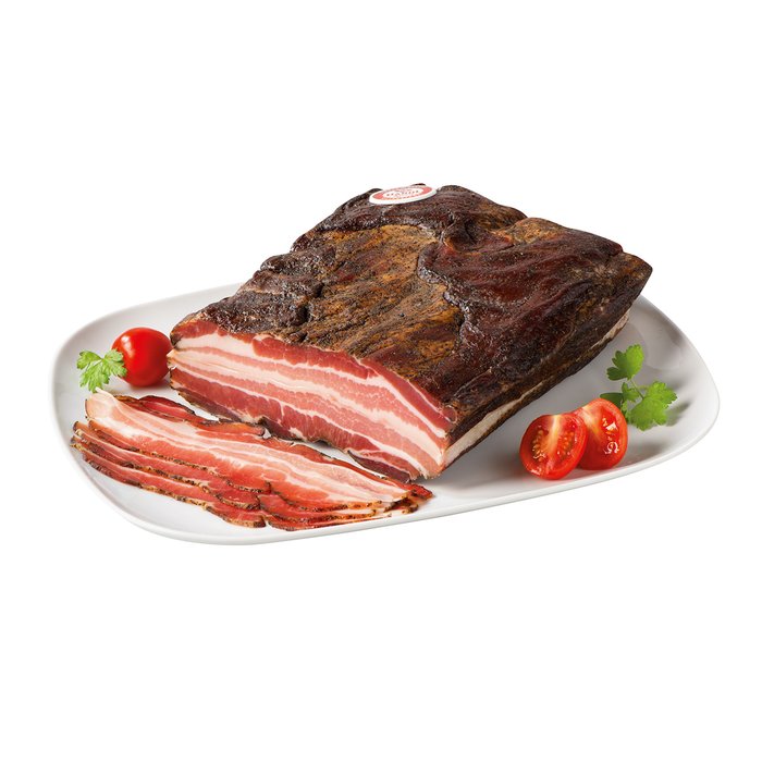 Tiroler Speck g.g.A. Bauchspeck, ohne Schwarte geformt.