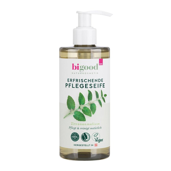 Hier ist die Natur in guten Händen: die bi good Pflegeseife Zitronenmelisse ist für das viele Händewaschen gemacht. Milde Tenside auf pflanzlicher Basis reinigen und pflegen natürlich, erfrischende Feuchtigkeit bewahrt die Haut vor dem Austrocknen. Und sobald die Flasche leer ist, gibt es den Zitronenmelissen-Duft aus dem umweltfreundlichen Nachfüllbeutel. Das findet die Natur allerhand.