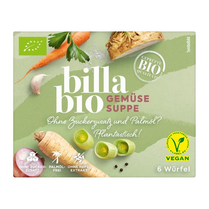 Meersalz, Bio-Sheafett, Bio-Maisstärke, Bio-Gemüse 11% (Bio-Zwiebel, Bio-Karotten, Bio-Pastinake, Bio-Lauch, Bio-SELLERIE, Bio-Kürbis), Bio-Gemüsesaftkonzentrat (Bio-Karotten, Bio-Zwiebel), Bio-Kräuter (Bio-Petersilie, Bio-Liebstöckelblätter), Bio-Gewürze (Bio-Kurkuma, Bio-Liebstöckelwurzel, Bio-Ingwer, Bio-Muskatnuss, Bio-Pfeffer, Bio-Fenchelsamen), Bio-Knoblauch, Bio-Sonnenblumenöl