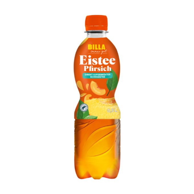 Der BILLA immer gut Eistee Pfirsich verbindet direkt aufgebrühten Schwarztee mit fruchtigem Pfirsichsaft. Die perfekte Wahl für eine Erfrischung an warmen Tagen oder einfach für zwischendurch in der praktischen 500ml Größe.