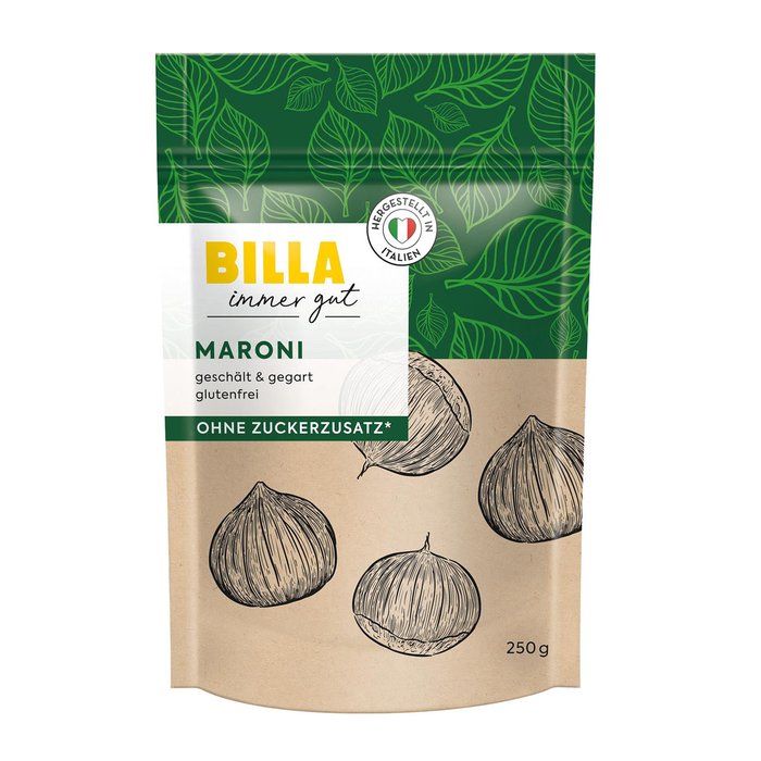 Die BILLA immer gut Maroni sind immer eine gute Wahl! Gegart und geschält sind sie glutenfrei und zeichnen sich durch ihren nussig-süßen Geschmack aus. Diese köstlichen Maroni schmecken nicht nur pur als Snack, sondern eignen sich auch hervorragend als Beilage oder Zutat für Schmorgerichte, Braten und süße Desserts.