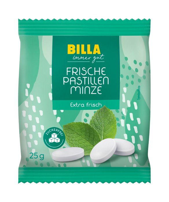Zutaten: Süssungsmittel: Sorbit und Acesulfam K , natürliches Minze Aroma (1.9%), natürliches Aroma, Trennmittel: Magnesiumsalze der Speisefettsäuren.