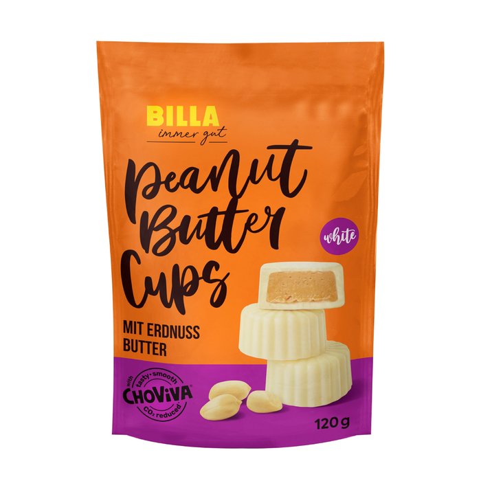 Hülle auf Basis einer zuckerhaltigen Fettglasurmasse gefüllt mit Erdnusscreme 40%.