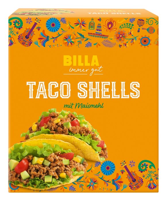 Backen Sie die Taco-Shells im vorgeheizten Ofen bei 180 Grad für ca. 3 Minuten.