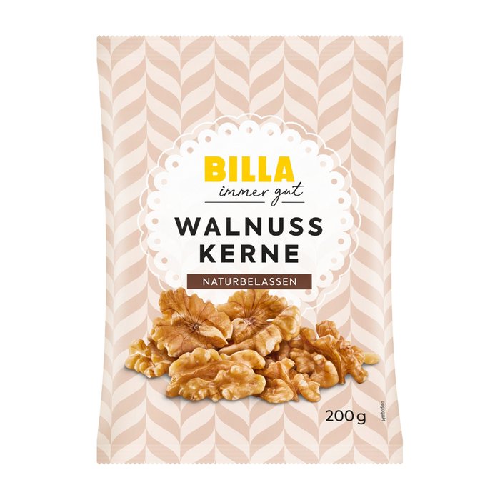 BILLA immer gut Walnusskerne von bester Qualität freuen sie sich darauf, sich in Mehlspeisen oder auch in anderen Gerichten nützlich machen zu können.