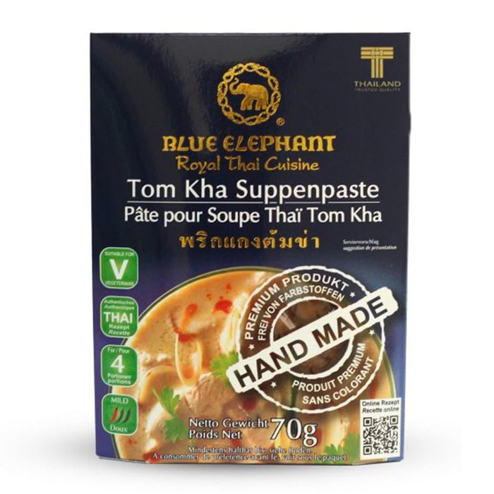 Zutaten: Galgant 21.4%, Tamarindenpaste (Tamarinde, Wasser), Zitronengras 14.3%, Schalotten 12.9%, vollständig raffiniertes Sojabohnenöl, Zucker, Salz, Koriander, Kaffir-Limettenblätter 2.8%, getrocknete rote Chili, Knoblauch. Kann Spuren von SESAM und ERDNÜSSEN enthalten.