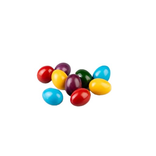 Zutaten: HÜHNEREIER gekocht, Farbstoff: E120, E131, E160b(i), Überzugsmittel: Schellack, Carnaubawachs.