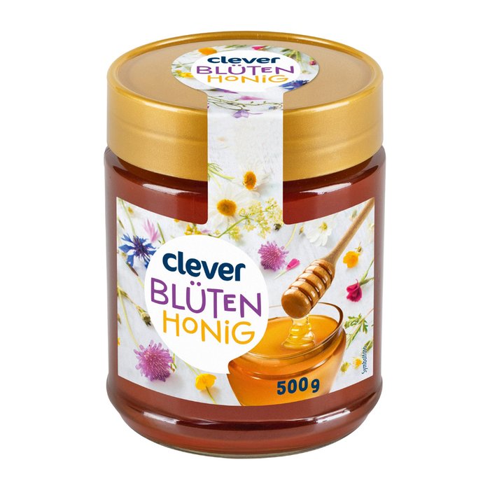 Der clever Blütenhonig stammt aus erlesenem Blütennektar und verleiht Speisen und Getränken einen süßen Geschmack. Besonders gut eignet sich der clever Blütenhonig zum Verfeinern von Müsli, Tees und Kuchen. Zudem kann die süße Verführung als Hausmittel gegen Erkältungen eingesetzt werden und die Abwehrkräfte stärken.