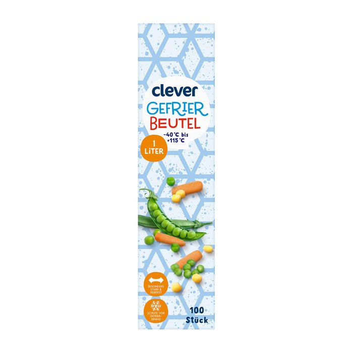 Die praktischen clever Gefrierbeutel 1 Liter eignen sich ideal zum Einfrieren und Frischhalten von Lebensmitteln. Das Gefriergut behält seine Vitamine und Mineralstoffe, sowie seinen Geschmack und sein Aroma.