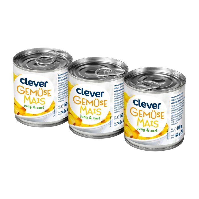 Der clever Gemüsemais ist auch im praktischen 3er-Pack erhältlich und lässt sich so super portionieren. Er bietet eine zarte Ergänzung für knackige Salate und eignet sich auch hervorragend als Pizza-Belag.