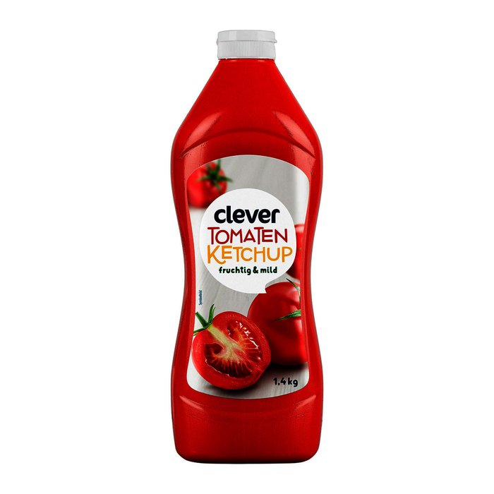Zutaten: Trinkwasser, Tomatenmark konzentriert 20% (entspricht 150g Tomaten je 100 g Ketchup), Zucker, modifizierte Stärke, iodiertes Speisesalz (Salz, Kaliumjodat), Säuerungsmittel: Essigsäure; Gewürze.