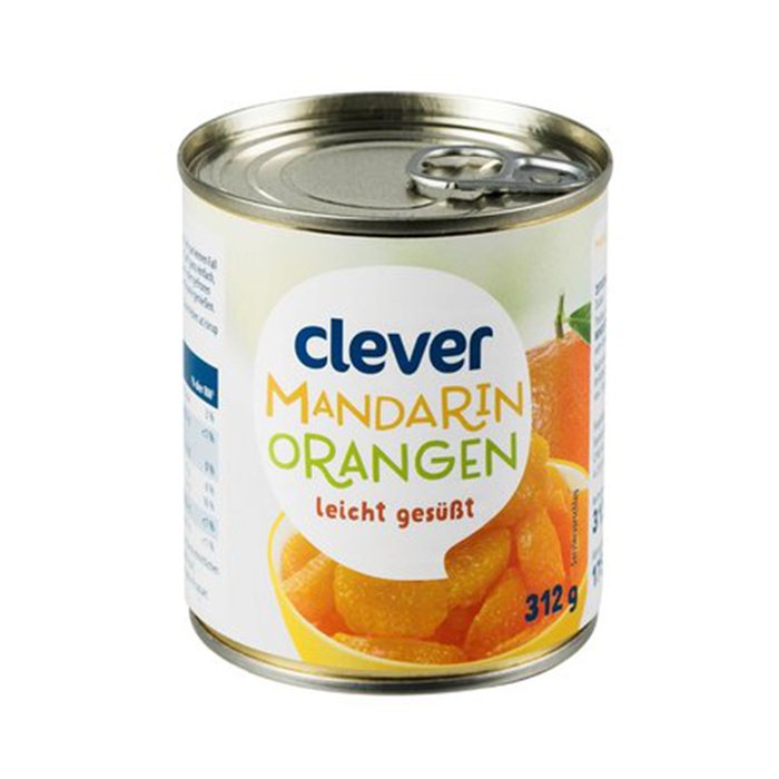 Zutaten: Mandarin-Orangen, Wasser, Zucker, Säuerungsmittel: Citronensäure.