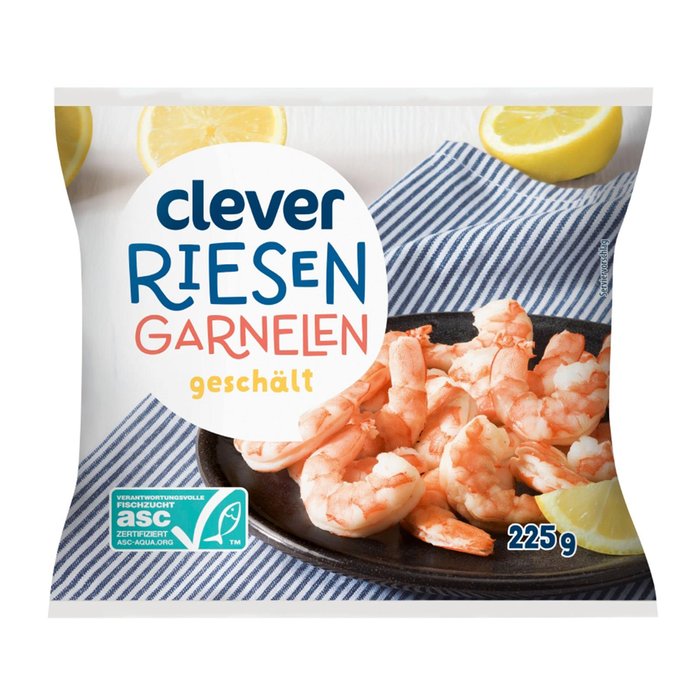 Die clever Garnelen kurz antauen lassen, unter kaltem Wasser abspülen und trocken tupfen. Mit Zitronensaft beträufeln, würzen und wie folgt zubereiten: