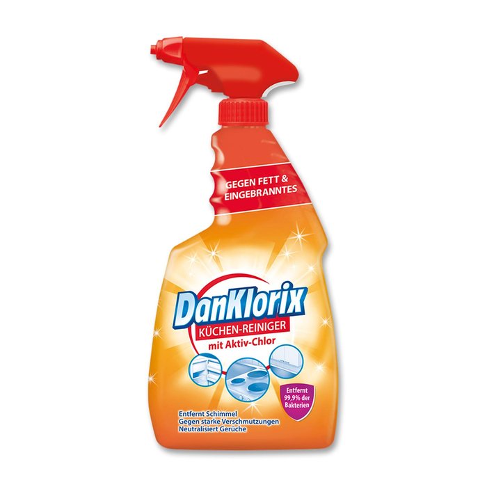Der DanKlorix Küchen-Reiniger mit Chlor wirkt gegen Fett und Eingebranntes. Er entfernt Schimmel, neutralisiert Gerüche und wirkt bei starken Verschmutzungen.
