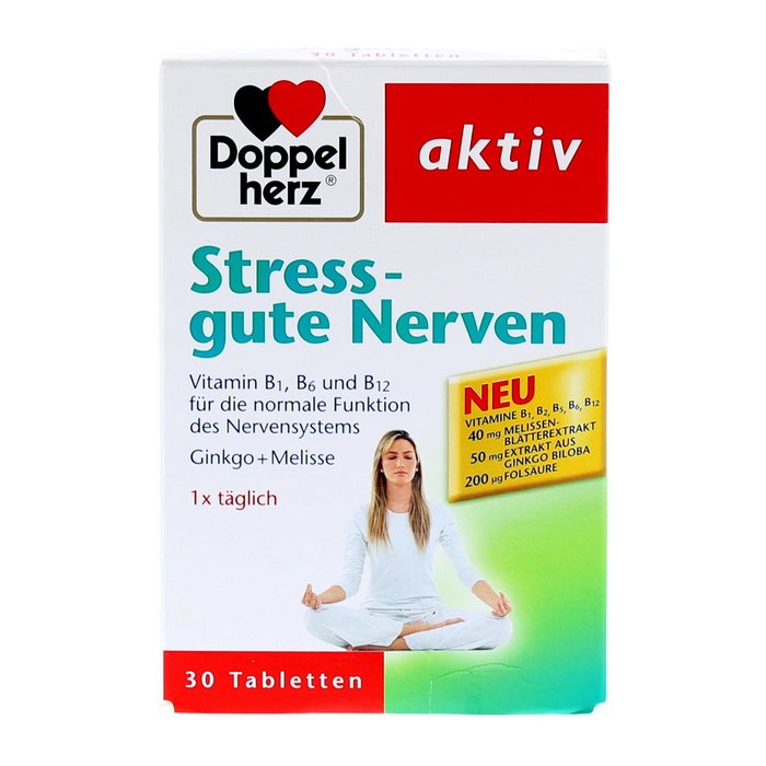 Tabletten mit B-Vitaminen, Ginkgoblätterextrakt und Melissenblätterextrakt, Nahrungsergänzungsmittel