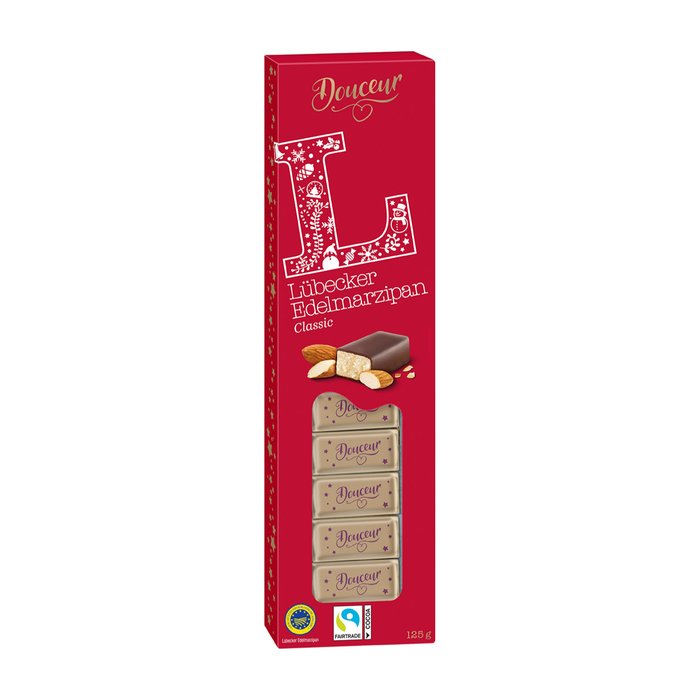 Lübecker Edelmarzipan 75 % in Zartbitterschokolade 25 %