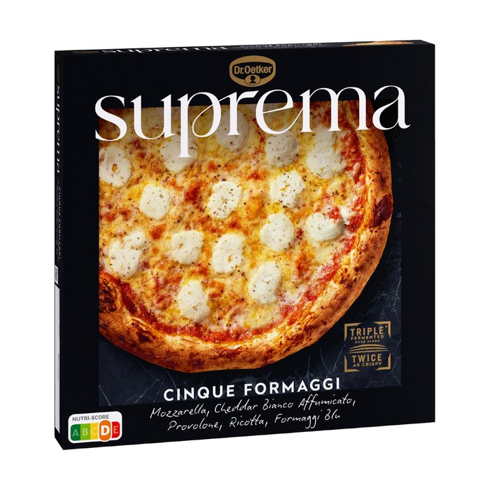Bis zur Zubereitung gefroren aufbewahren. 1. Backofen vorheizen. Ober-/Unterhitze: 220°C, Heißluft: 200°C. 2. Während der Aufheizphase des Backofens die Pizza bei Zimmertemperatur ohne Folie antauen lassen. 3. Pizza auf dem Rost im unteren Drittel des Backofens 11-14 Min. backen. Stell sicher, dass das Produkt vor dem Verzehr vollständig durcherhitzt ist.