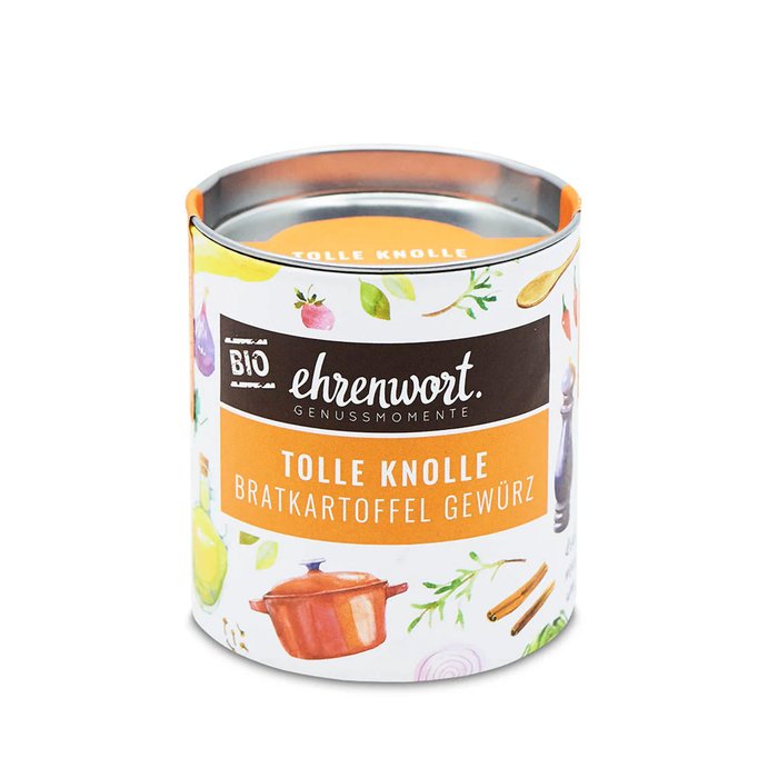 Bio Tolle Knolle Bratkartoffel Gewürzzubereitung verwandelt Kartoffeln im Handumdrehen in eine würzige Köstlichkeit. Mit Zwiebel, Petersilie, Kümmel und vielen anderen Gewürzen fühlt sich die Kartoffel beim Braten so richtig wohl. Großzügig über den tollen Knollen in der Pfanne verteilt, braucht es nichts anderes für eine perfekte Beilage. Mit dieser würzigen Mischung verfeinerte Bratkartoffel können zu verschiedensten Fleisch- oder Fischgerichten gereicht werden. Aber ganz ehrlich: wer braucht bei solchen Bratkartoffeln noch etwas anderes?