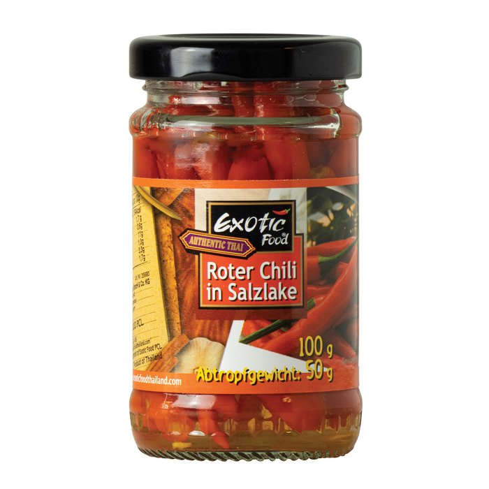 Roter Chili, ganz, in Salzlake