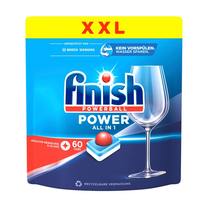 Der Finish Powerball sorgt dabei für strahlend sauberes Geschirr schon beim 1. Spülgang.