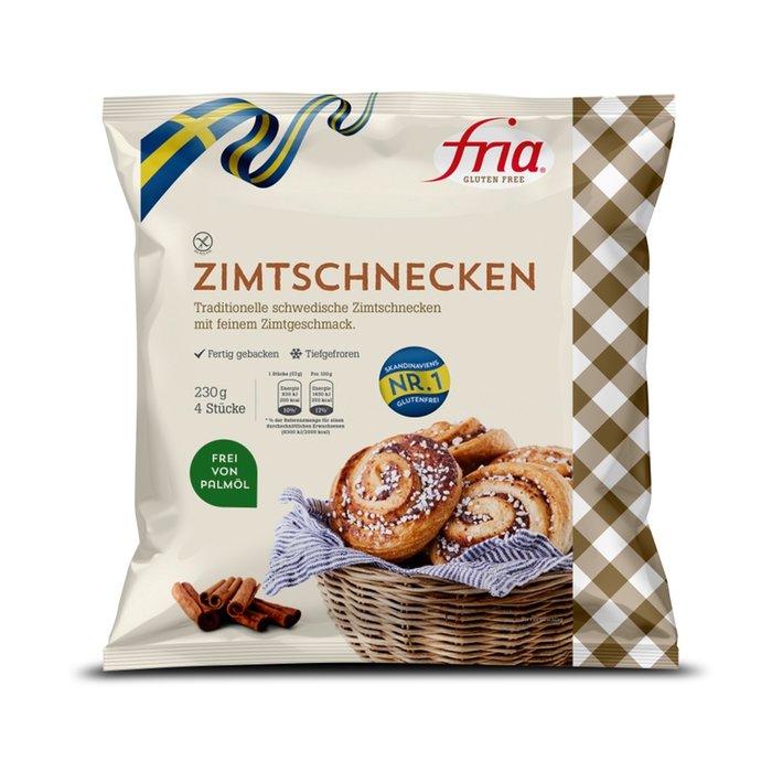 Frias glutenfreie Zimtschnecken - das ist wahres schwedisches Glück vom Backblech. Traditionell gibt es sie in Schweden seit ca. 1920 ¿ unsere leckeren glutenfreien Zimtschnecken gibt es seit 1997. In traditioneller Weise mit Zimtfüllung, fertig gebacken zum Genießen.