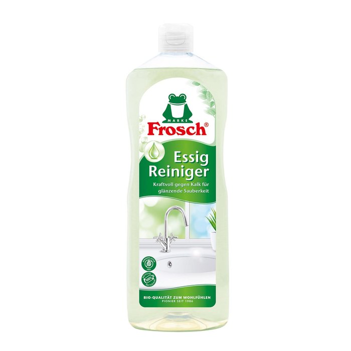 Frosch Essig Reiniger basiert auf der natürlichen Kraft von Essig. Er entfernt Kalk, Wasserflecken, Seifenreste und Schmutz von vielerlei Oberflächen.