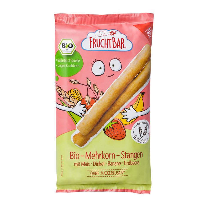 Bio Mehrkorn-Stangen mit Mais, Dinkel, Hirse, Banane und Erdbeere