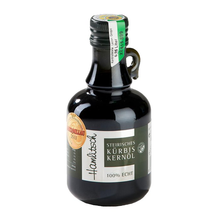 Durch schonendes Rösten und Pressen verarbeiten wir in unserem Familienbetrieb seit 1928 nach alter Tradition steirische Kürbiskerne zum Steirischen Kürbiskernöl ggA. (geschützte geografische Angabe). Die vielen Auszeichnungen und Prämierungen unseres Produktes spiegeln den hohen Qualitätsstandard wider.
