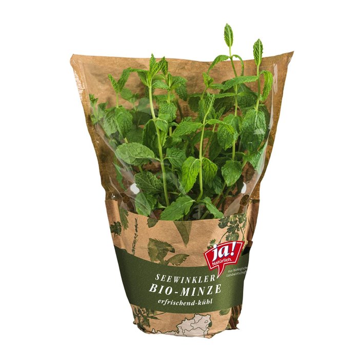 Die Ja! Natürlich Bio-Minze kommt aus dem Burgenland und eignet sich für erfrischende Wassergetränke mit Zitrone und Gurke, aber auch für Cocktails oder Tees. Pfefferminze wird auch für Suppen, Pesto und Salate verwendet.