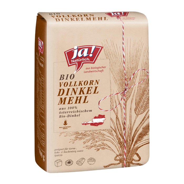 Mit dem nussigen Dinkelvollkornmehl von Ja! Naturlich lassen sich Kuchen und herzhafte Speisen zubereiten. Das aromatische Mehl enthalt viele Ballaststoffe. Schonend gemahlen in traditioneller Steinmuhle