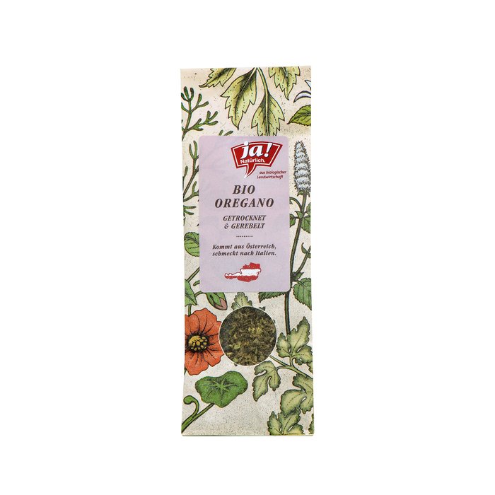 Der Ja! Natürlich Bio-Oregano wird in Ober- und Niederösterreich angebaut und händisch geerntet. Danach wird er schonend getrocknet. Bei Oregano ist es besonders wichtig, dass zwischen Ernte und Trocknung nur wenig Zeit vergeht. Um das Maximum an Inhaltsstoffen zu bewahren wird der Oregano samt dem Stängel getrocknet und erst dann gerebelt und geschnitten.