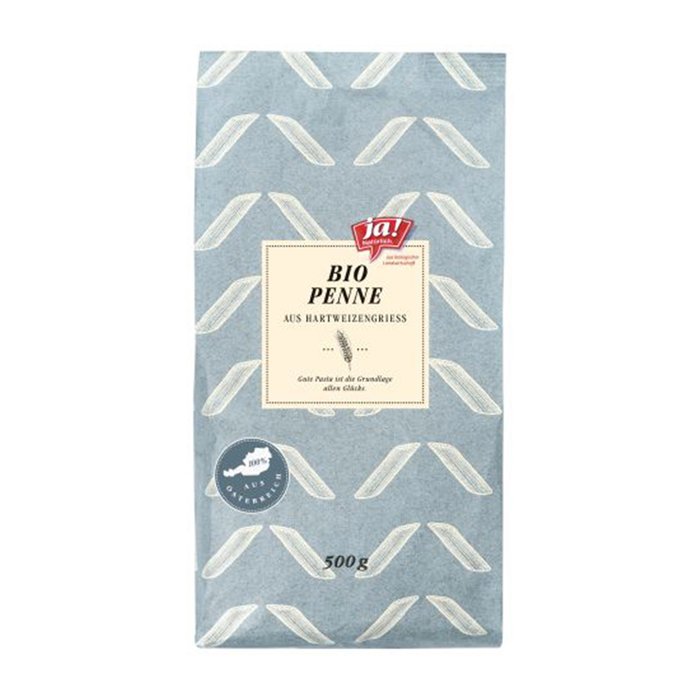 Bei den Ja! Natürlich Bio-Penne handelt es sich um ein 100% österreichisches Bio-Produkt. Ausschlaggebend für Farbe und Geschmack der Bio-Pasta ist die Qualität des Getreides. Somit wird nur Weizen der höchsten Qualitätsstufe aus 100 % biologischer, österreichischer Landwirtschaft verarbeitet.