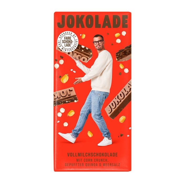 Jokolade Vollmilchschokolade mit Corn Crunch, gepuffter Quinoa & Meersalz