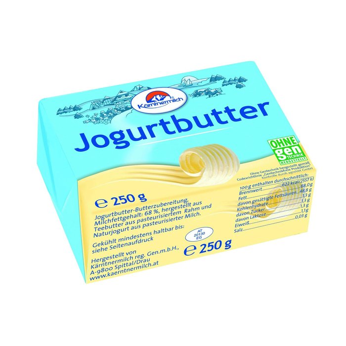 Die Basis für die weiche Joghurtbutter von Kärntnermilch bildet streng kontrollierte Rohmilch. Ihr leicht säuerlicher Geschmack verfeinert viele Gerichte.
