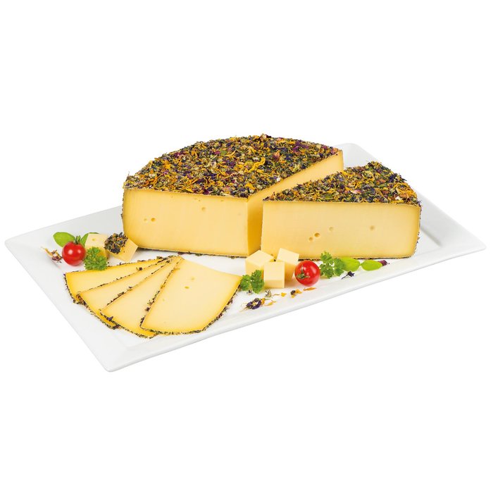Heublumenrebell, Schnittkäse mindestens 50% Fett i.Tr., mit Heublumen affiniert auf tagesfrischer Heumilch.