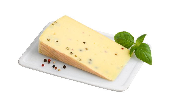 Schnittkäse, mindestens 50% Fett. i. Tr., mit Pfefferkörnern, aus tagesfrischer Heumilch g.t.S