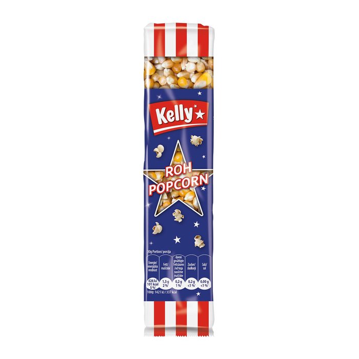 Und so wird's gemacht: Man nehme einen 2-Liter-Topf, gebe 2 Esslöffel Pflanzenfett oder Öl (keine Margarine) und 2 Esslöffel Kelly Rohpopcorn hinein. Den Topf mit einem Deckel bedecken und bei mittlerer Hitze rösten. Den Topf etwas über dem Herd schütteln, dadurch bekommt das Popcorn von allen Seiten gleichmäßig Hitze und brennt nicht an. Nach ungefähr 1 1/2 - 2 Minuten ist der Pop-Vorgang beendet. Den Topf vom Herd nehmen und nach Belieben salzen. Köstlich auch mit Buttergeschmack: Zwei Esslöffel zerlassene Butter mit dem Popcorn verrühren.
