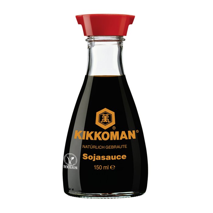 Die Sojasoße von Kikkoman mit charakteristischem Umami-Geschmack kommt in der praktischen Tischflasche und schmeckt nicht nur in asiatischen Gerichten.