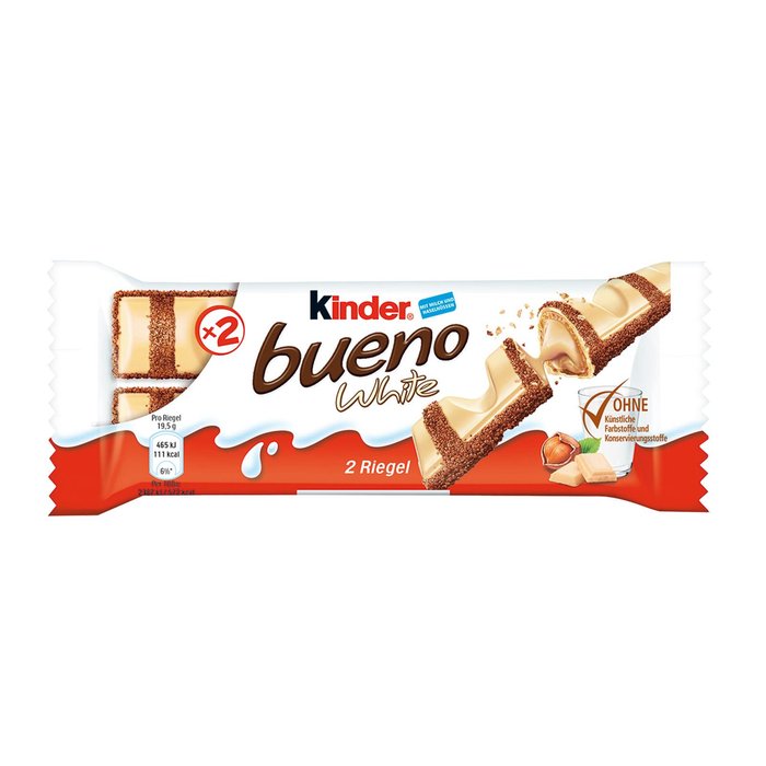 Zutaten: Weiße Schokolade 28 % (Kakaobutter, Zucker, MAGERMILCHPULVER, BUTTERREINFETT, Emulgator: Lecithine (SOJA), Vanillin), Zucker, Palmöl, WEIZENMEHL, MAGERMILCHPULVER (8,5 %), VOLLMILCHPULVER (5,5 %), HASELNÜSSE (5 %), SÜSSMOLKENPULVER , WEIZENSTÄRKE, fettarmer Kakao, Sonnenblumenöl, MILCHEIWEISS, Emulgator: Lecithine (SOJA), Backtriebmittel: Ammoniumhydrogencarbonat, Natriumhydrogencarbonat ; Aromen, Salz.
