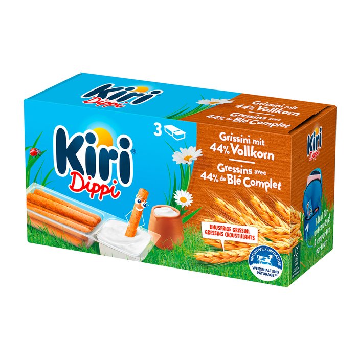 Zutaten Kiri Schmelzkäsezubereitung (71,4%): 42% FRISCHKÄSE (davon 72% pasteurisierte MILCH), Trinkwasser, 18% SAHNE, MILCHeiweiß, MILCHmineralkonzentrat, Schmelzsalz: E452, MOLKENkonzentrat, Speisesalz. Zutaten Grissini (28,6%): WEIZENvollkormehl (44%), WEIZENmehl, Olivenöl, GERSTENmalz, Speisesalz, Hefe. KANN SPUREN VON SENF UND LUPINEN ENTHALTEN
