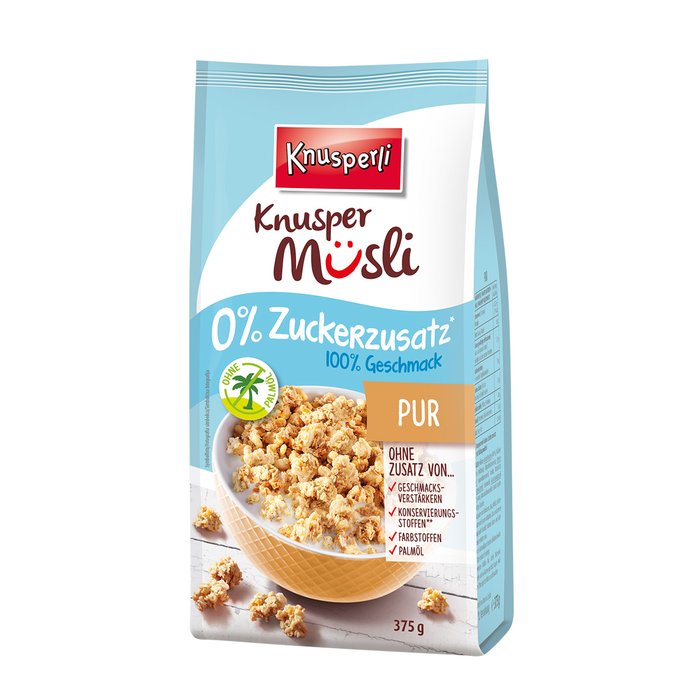 Genießen Sie Knusperli Knusper Müsli 0% Zuckerzusatz* Pur einfach so wie es ist -