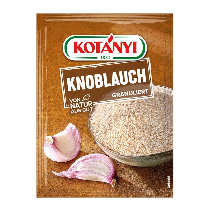 Knoblauch riecht und schmeckt scharf, leicht brennend und etwas süßlich. Bei Spezialitäten aus dem Mittelmeerraum und auch in der asiatischen Küche darf Knoblauch nicht fehlen. KOTÁNYI Knoblauch würzt Ihre Speisen wie frisch gepresster Knoblauch. Verwendung: Ein Muss für Risotto, Faschiertes, Lamm, Muscheln, Ratatouille, Tsatsiki und scharfen Spinat.