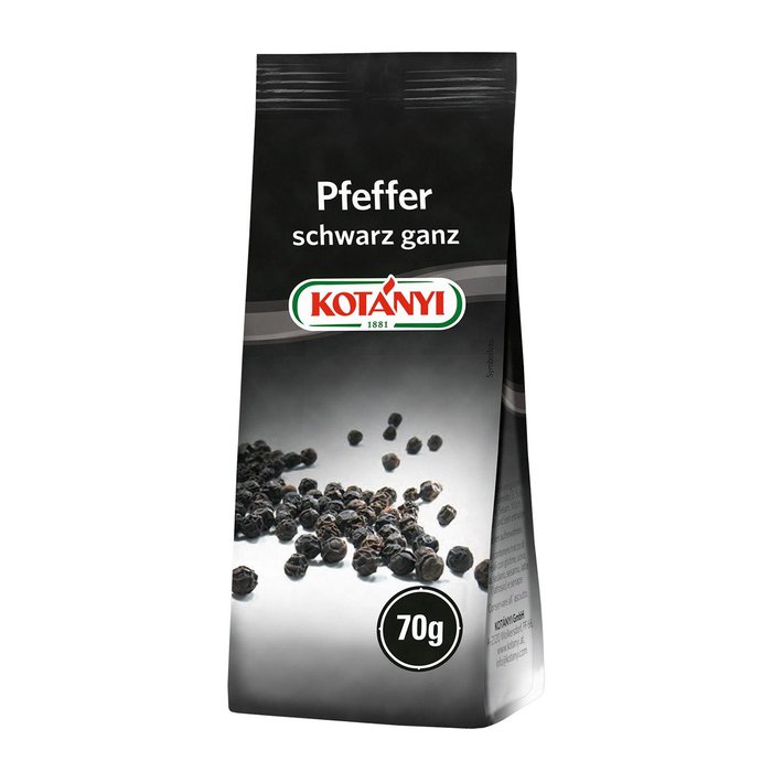 Schwarzer Pfeffer verleiht Ihren Speisen eine pikante Schärfe, besonders wenn er länger mitgekocht wird. Das Aroma schwarzen KOTÁNYI Pfeffers ganz kommt voll zur Geltung wenn er frisch gemahlen wird. Verwendung: Würzt Fleischgerichte, Fisch, Gemüse, Suppen, Saucen, Dressings und Salate.