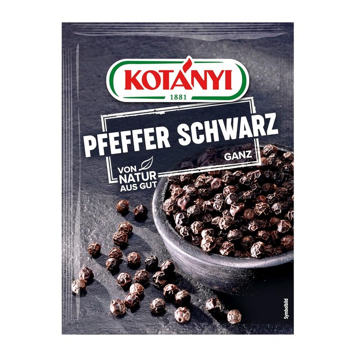 Schwarzer Pfeffer verleiht Ihren Speisen eine pikante Schärfe, besonders wenn er länger mitgekocht wird. Das Aroma schwarzen KOTÁNYI Pfeffers ganz kommt voll zur Geltung wenn er frisch gemahlen wird. Verwendung: Würzt Fleischgerichte, Fisch, Gemüse, Suppen, Saucen, Dressings, Salate.