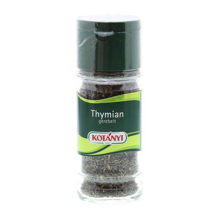 Thymian hat ein ausgeprägt würziges, rauchiges und leicht bitteres Aroma, das er am besten entfaltet, wenn er mitgegart wird. Thymian ist unverzichtbar bei mediterranen Lamm-, Geflügel-, Wild- und würzigen Fischgerichten. Er passt hervorragend zu Gemüse, Pilzen, Hülsenfrüchten sowie Kartoffelgerichten.
