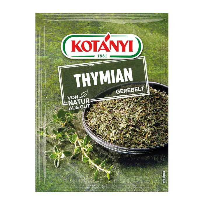 Thymian hat einen angenehmen, würzigen Geschmack, der wunderbar zu mediterranen Gerichten passt. Getrocknet sollte er möglichst früh beigefügt werden, da er erst beim Kochen sein Aroma entfaltet. Verwendung: Fein zu Fleisch, Fisch, Wild, Geflügel, Hülsenfrüchten und Pilzen.