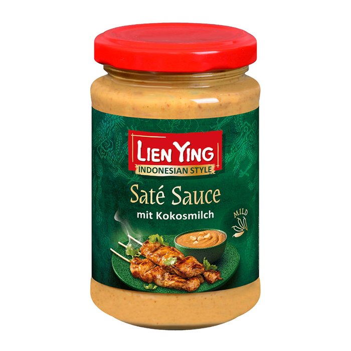 Zutaten: Wasser, ERDNUSSpaste (20%), Kokosnussmilch (13%) (Kokosnussextrakt, Wasser), Zucker, Sojasauce (Wasser, SOJAbohnen, Speisesalz, WEIZENmehl), getrocknete Chillies, Tomatenmark, Gewürze (enthält SENF), Speisesalz, Zitronensaftkonzentrat, Säuerungsmittel: Citronensäure; MILCHeiweißerzeugnis, Stabilisator: E 472e; Verdickungsmittel: Xanthan; Karamell, Maltodextrin.