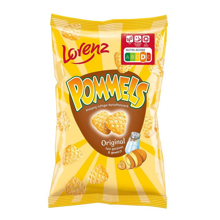 Zutaten: pflanzliche Öle (Sonnenblume, Raps in veränderlichen Gewichtsanteilen), Kartoffelstärke (33 %), Kartoffelpulver (27 %), Speisesalz, Zucker, Meersalz, Zwiebelpulver, Paprikapulver, schwarzer Pfeffer, Kurkumapulver, Aroma, Farbstoff: Paprikaextrakt; Antioxidationsmittel: stark tocopherolhaltige Extrakte. Kann GLUTEN und MILCH enthalten.
