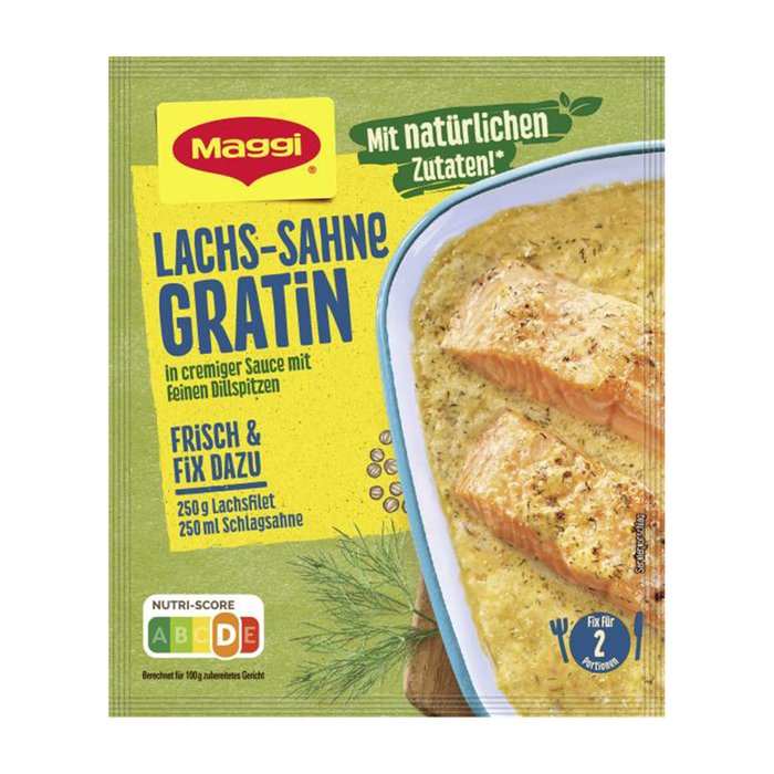 Zubereitung für 2 Portionen: 250 g frisches oder tiefgekühltes Lachsfilet (alternativ Seelachs), 250 ml Schlagsahne. Zubereitung: 1) Frischen, aufgetauten oder gefrorenen Fisch in eine Auflaufform legen. 2) Beutelinhalt in 250 ml Sahne einrühren. 3) Sauce über den Fisch gießen und im vorgeheizten Backofen bei 200°C (Umluft 170°C) ca. 25 Min. backen. Tiefgekühlter Lachs benötigt ca. 35 Min. Garzeit. Dazu schmeckt Reis. Zubereitung im Airfryer: 30 Min, 170°C. Die Garzeiten hängen vom Airfryer-Model ab. Stelle sicher, dass alle Zutaten durchgegart sind. Die Angaben beziehen sich auf einen 2000W Airfryer mit 6,2L.