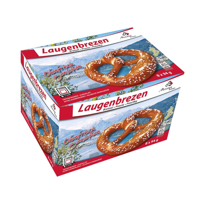 Brezen auf ein mit Backpapier belegtes Backblech legen, bei Raumtemperatur für 10 Min. Auftauen. Anschließend bei 180 -200°C in 15-16 Minuten fertig backen!